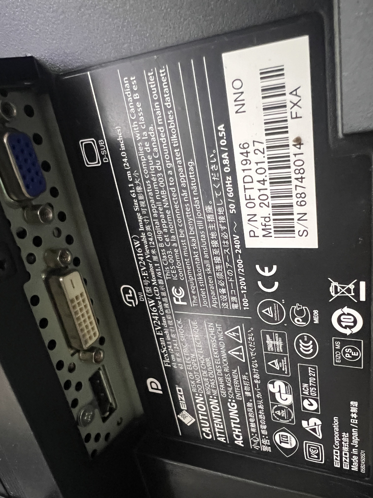 Eizo 24" monitor EV2416W