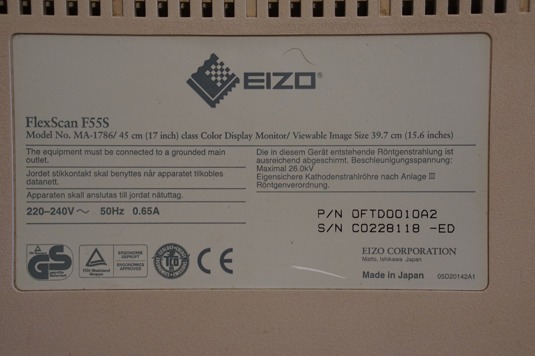 EIZO FlexScan F55s 17" CRT monitor