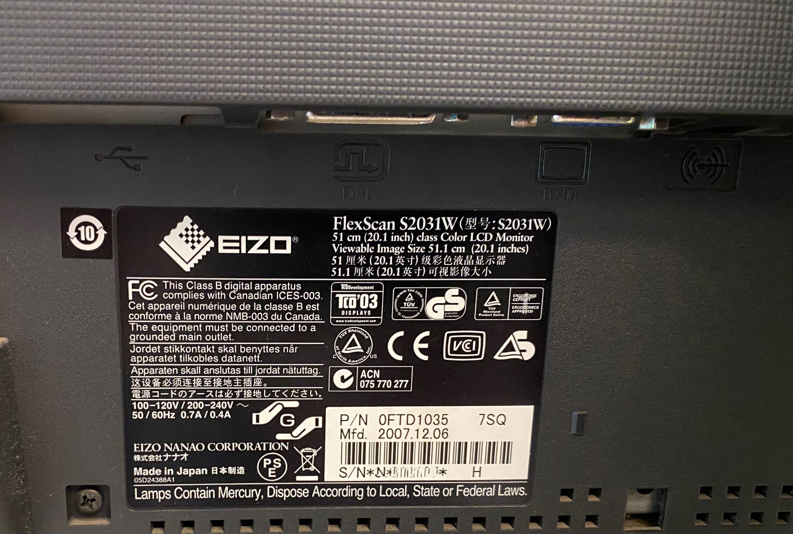 Eizo FlexScan S2031W monitor eladó Óbudán kitűnő állapotban.