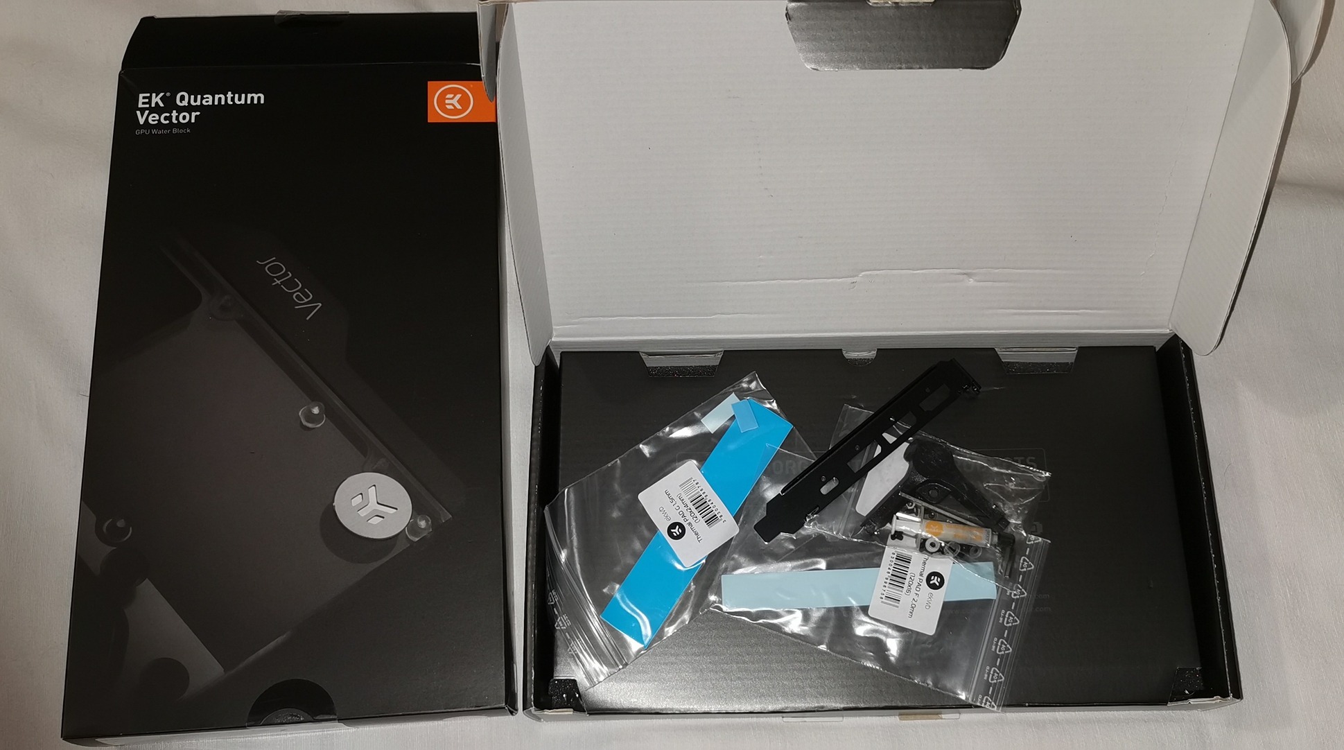 25000Ft - EKWB Quantum Vector RX6800/6900 Nickel-Acetal DRGB - GPU hűtőblokk Radeon RX6800/6900 kártyákhoz [link] - (a gyári 1,5mm-es thermal pad készlet egy része el lett használva, de ezt pótoltam egy új 1,5mm-es Arctic TP-3 thermal paddel)