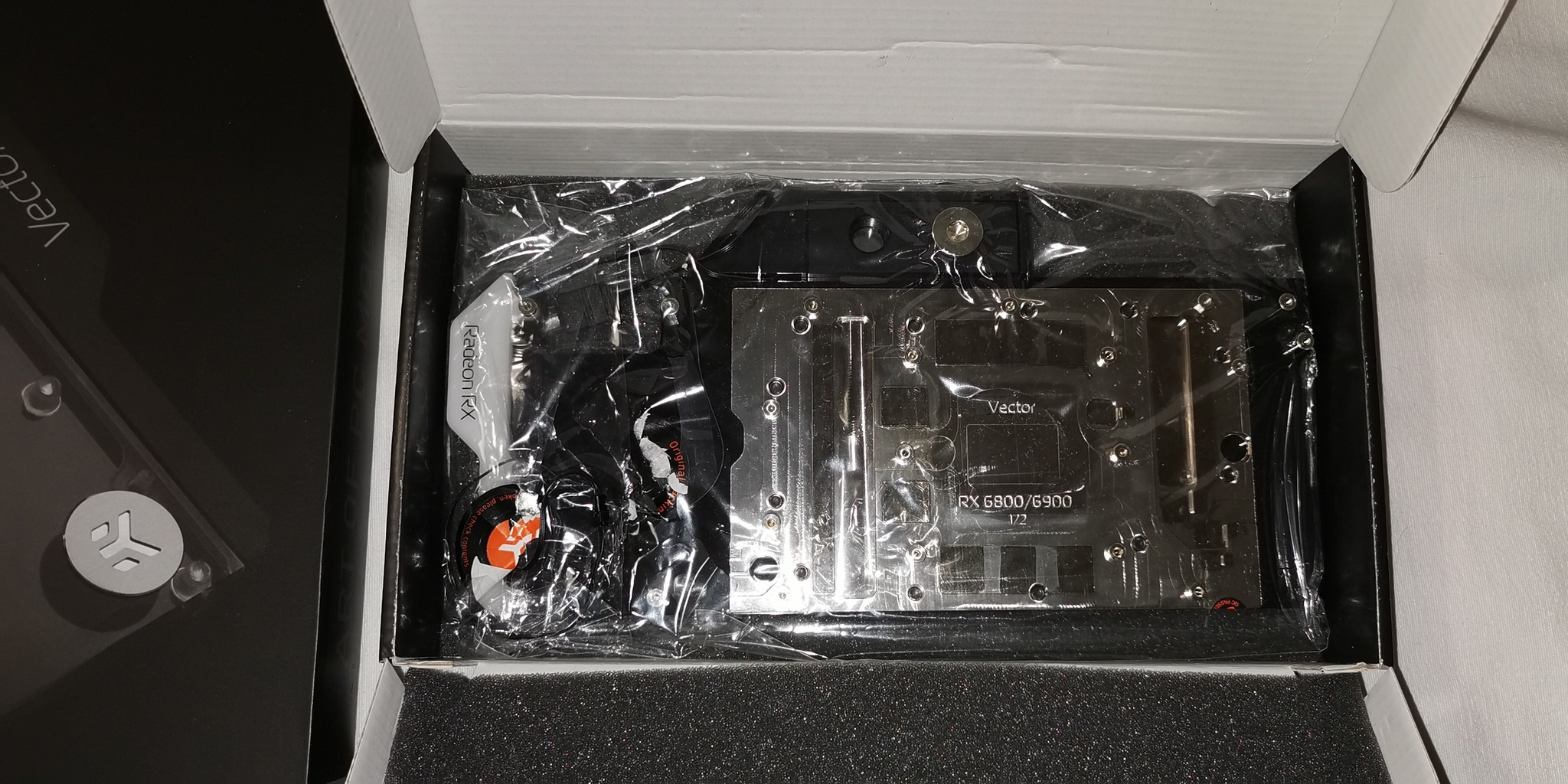 EKWB Quantum Vector RX6800/6900 Nickel-Acetal DRGB - GPU hűtőblokk Radeon RX6800/6900 kártyákhoz (28000Ft), itt a gyári 1,5mm-es thermal pad készlet egy része el lett használva, de ezt pótoltam egy új 1,5mm-es Arctic TP-3 thermal paddel