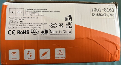 Mérete 10.1 colos, 4Gb ram, 64Gb rom, a felbontása 1280x720 Egy darab 6 pines, egy darab 4 pines USB, egy RCA kimenet mikrofon bemenettel, külső mikrofon, tolató kamera kimenet, tolató kamera, power kábel, GPS antenna, és két szerelő keret van hozzá. Aktív hűtőventilátorral szerelt,ami applikációval szabályozható, a háttér megvilágítás hétféle színből választható.