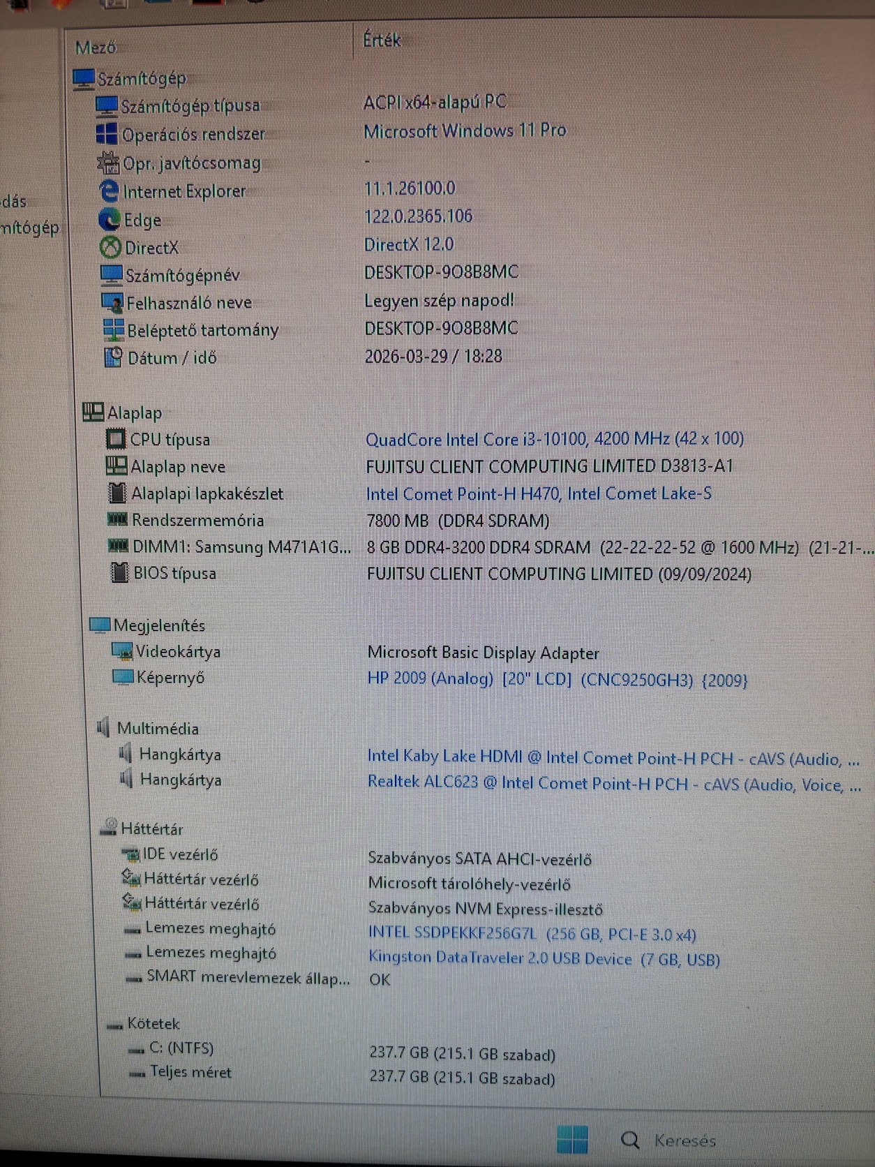 • Háttértár: 256GB SSD – gyors rendszerindítás és adatkezelés