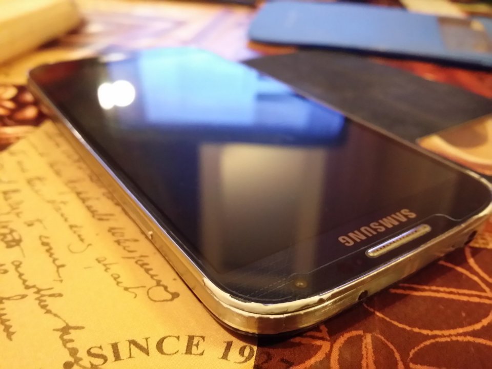 Minden sarka le van kopva rendesen, de hát ez a szokásos Samsung utolsó utáni anyaghasználatának tudhatjuk be még a (volt) prémium szegmensben is. Egy 3 rongyos keretcsere, és olyan mint az új.