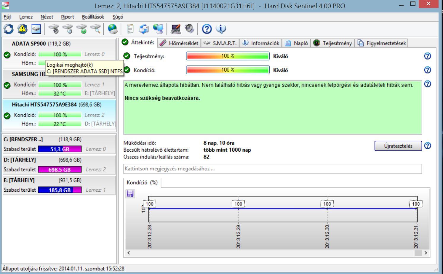 Eladó 2.5" Hitachi 750GB Noti HDD.Top állapotban.100/100 as