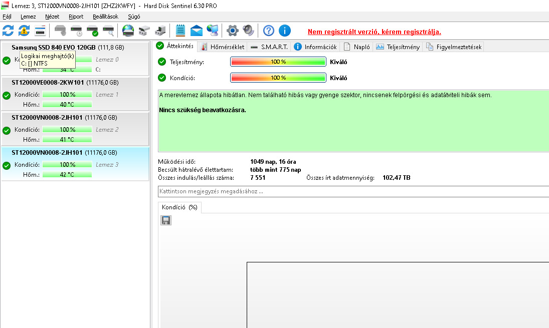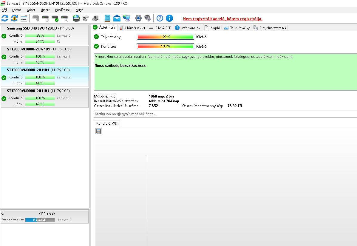 Eladó 2db 12TB Seagate Ironwolf próbagarral. Képen látható 100/100 állapotban, az egyik 1050 a másik 1060 napot futott, hibátlanok, nem szerver környezetben voltak használva, asztali gépben, ez látszik az inditás/leállásokból. A kiirt ár darabár, ha elviszed mindkettőt 90e ft-ért odaadom.