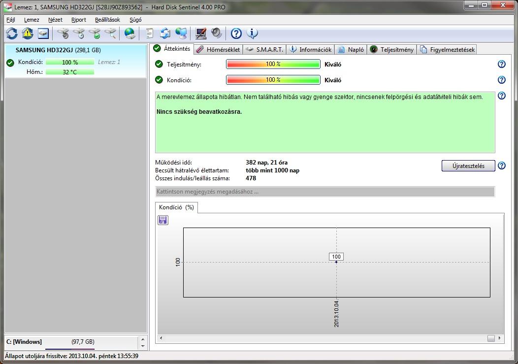 Eladó 320GB Sata Samsung merevlemez 100/100