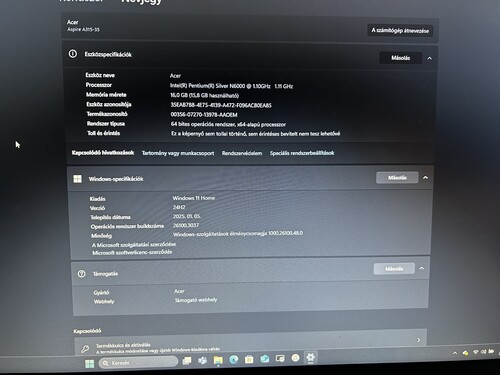 Eladó Acer Aspire 3 A315 Pentium Silver N6000 16GB RAM 512 SSD 2023 szép állapotban dobozával!