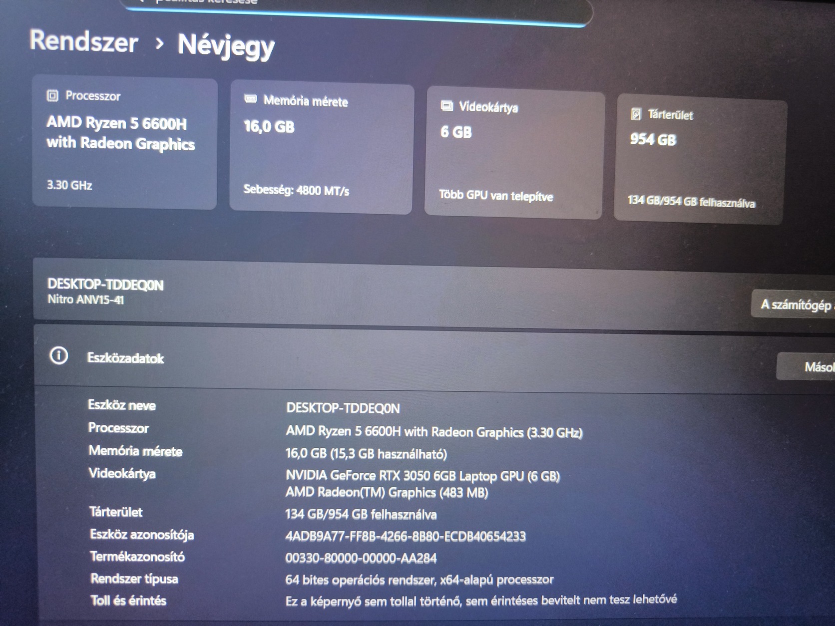 Eladó acer nitro v15 garanciával.