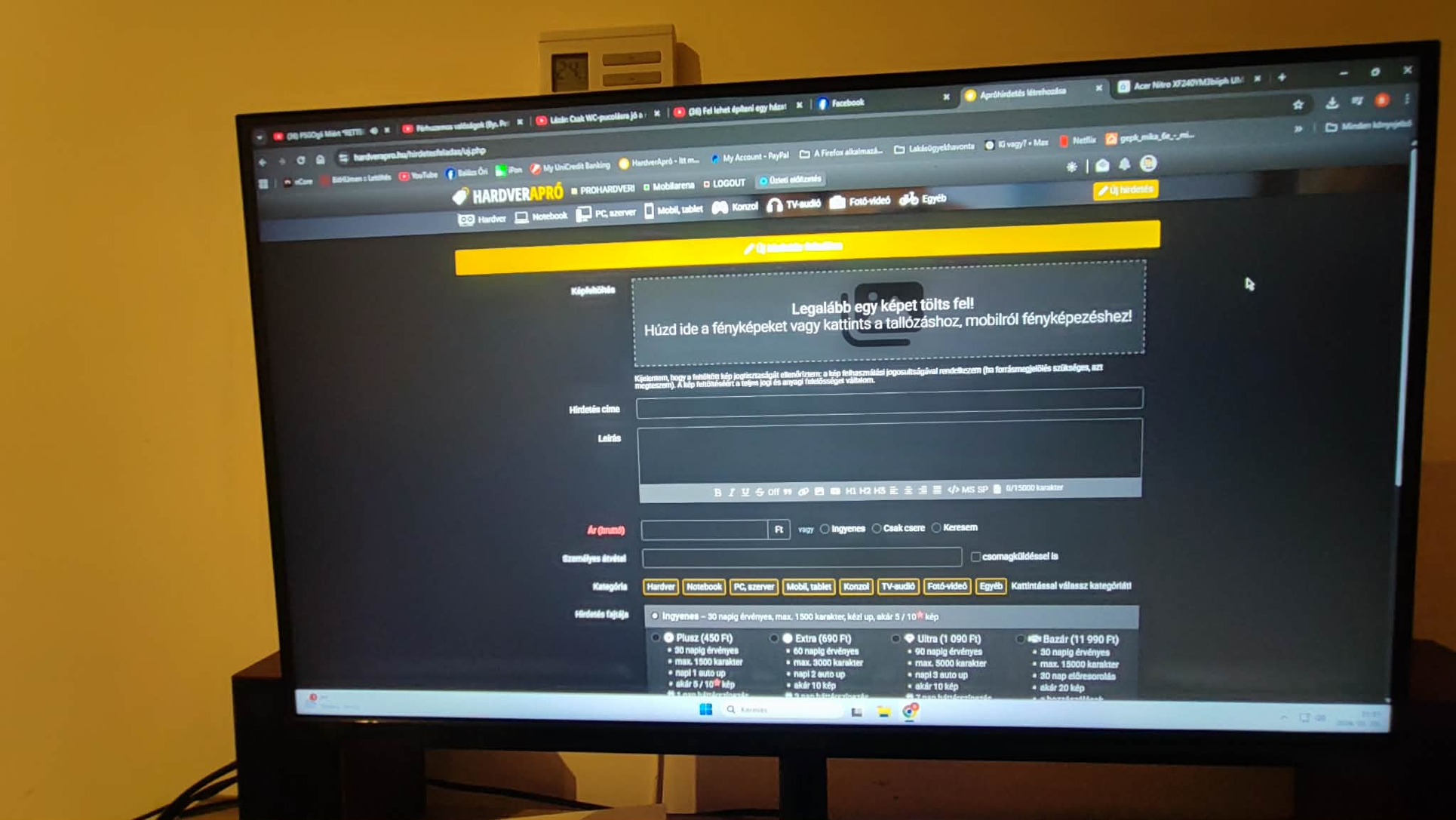 Eladó a címben is említett Acer Nitro XF240YM3biiph monitor, nagyobbra váltás miatt.
