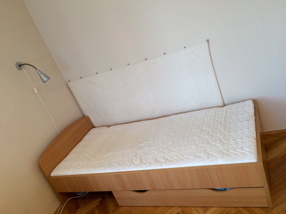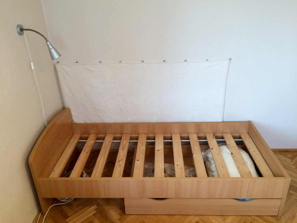 Eladó egy jó minőségű (RS bútor), szép állapotban lévő ágykeret, ágyráccsal és ágyneműtartóval.