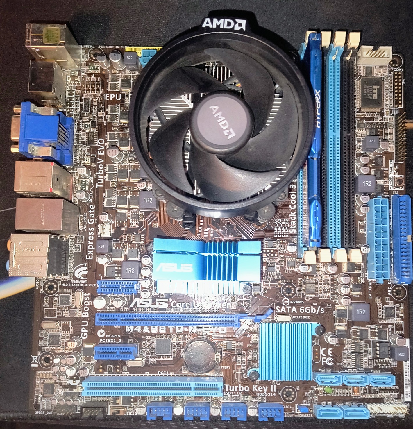 Asus M4A88TD-M EVO + Phenom II X4 965+ 4gb ram.