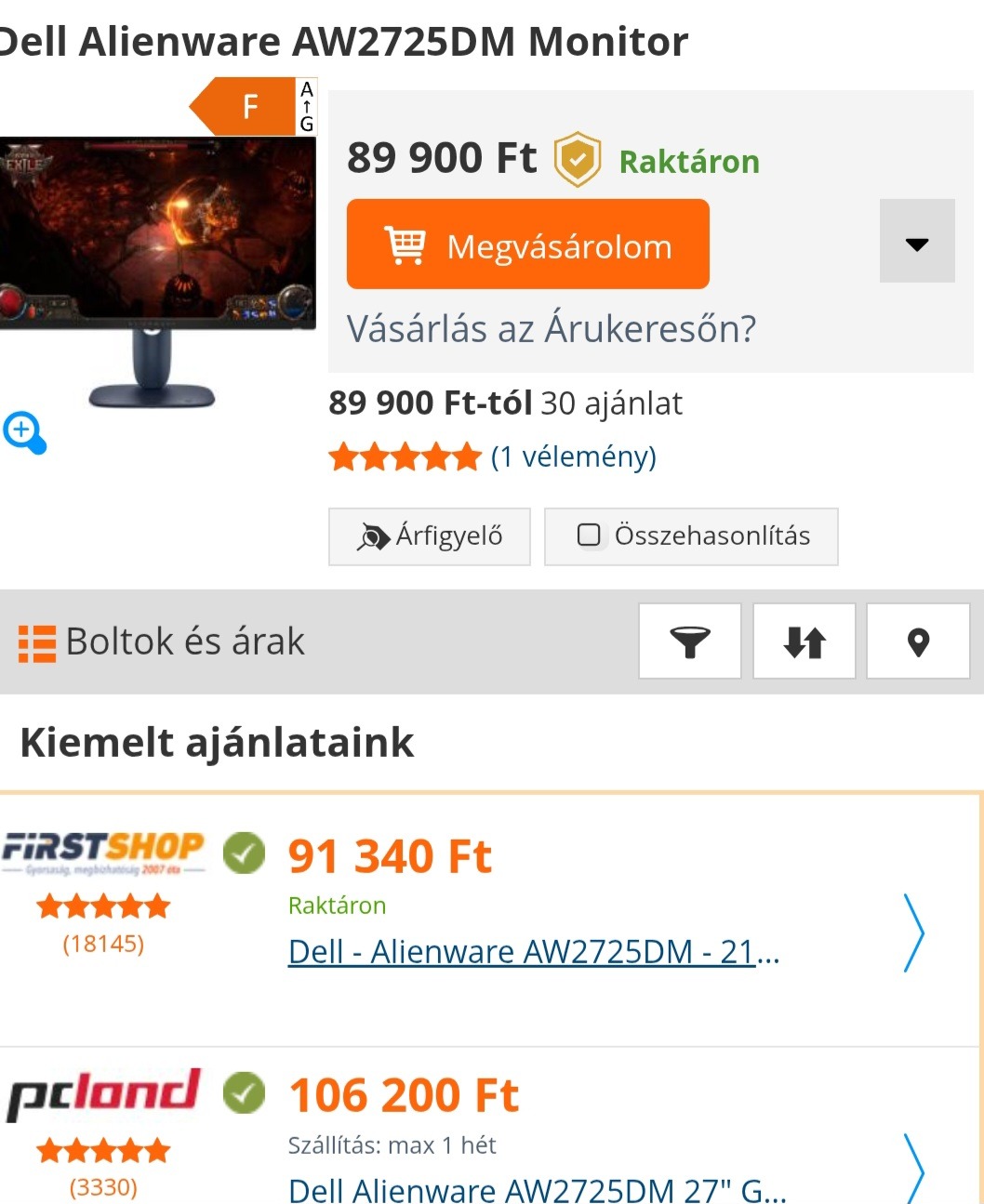 Eladó Alienware 2725DM monitor Budapest