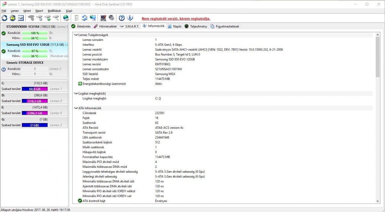 SSD: Samsung 850 EVO 120GB 3D-VNAND(3,5 év garancia)