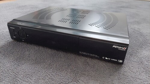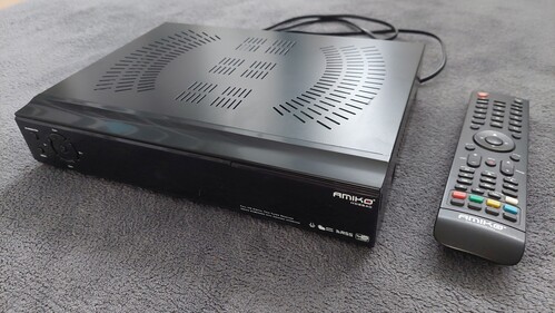 Eladó Amiko HD 8840 set-top box, amire 2 antenna/coax kábel is csatlakoztatható, így egyszerre lehet rajta nézni is műsort és fel is venni vele, külső meghajtóra (HDD).