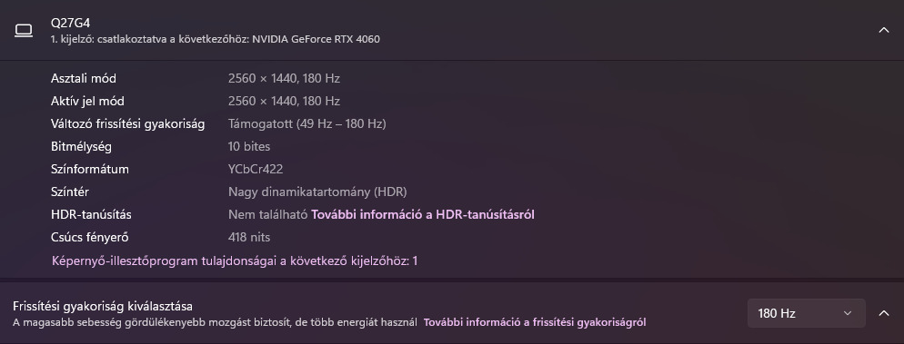 Max. frissítési sebesség 180 Hz