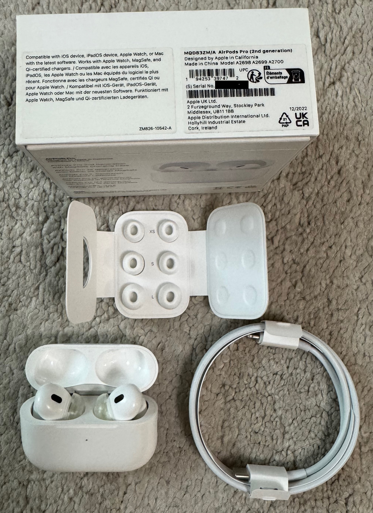 Eladó egy Lighhning csatlakozós Apple Airpods Pro 2 fülhallgató, dobozában, tartozékaival. A xs, s, m illesztékek érintetlenek, a gyári L-es helyett egy SpinFit SuperFine illeszték jár, mely kényelmesebb, és kevésbé esik ki a fülből mint a gyári.
