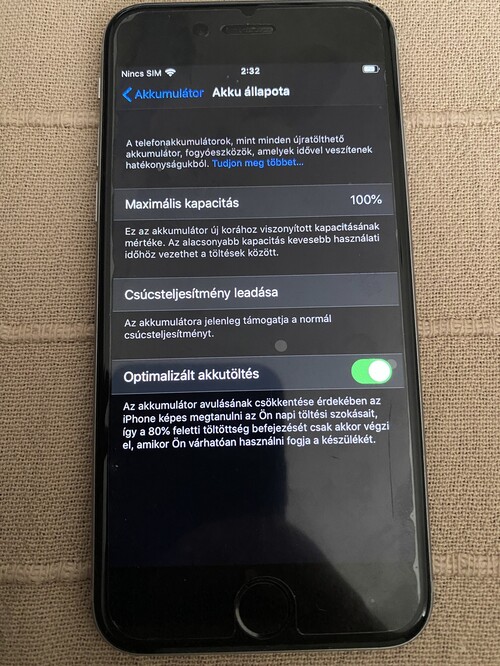 Eladó egy jó állapotban levő iphone 6s , 16GB. Az akkumulátor kapacitása 100%.