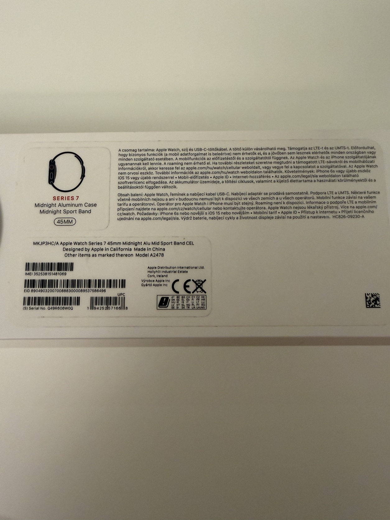 Eladó Apple Watch 7-es széria Cellular (eSIM-mel használható), első tulajdonostól, kizárólag a férjem használta. 45 mm-es méret, Midnight (fekete) színű, alumínium, Mid (fekete) színű sport szíjjal. Karcmentes, megkímélt állapotú. Minden funkció hibátlanul működik. Újabb modellre váltás miatt eladó