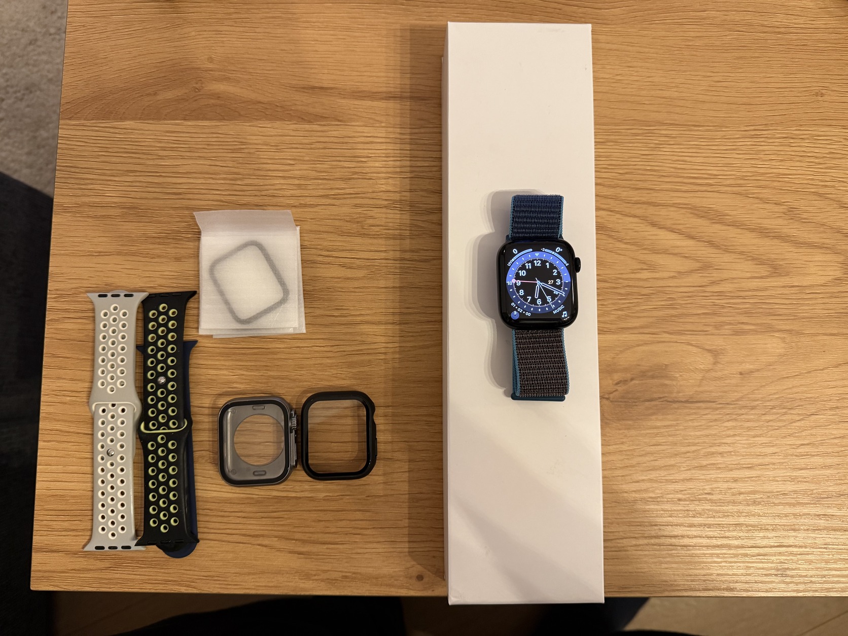Eladó a címben megjelölt Apple Watch 45 mm Midnight (éj fekete) színben. Használt (kijelzőn van pár kisebb karc), de szép állapotú. Igyekeztem erős lámpa fényben fotózni, hétköznapi használatnál egyáltalán nem zavaró. Dobozával együtt, a képen látható szíjakkal eladó.