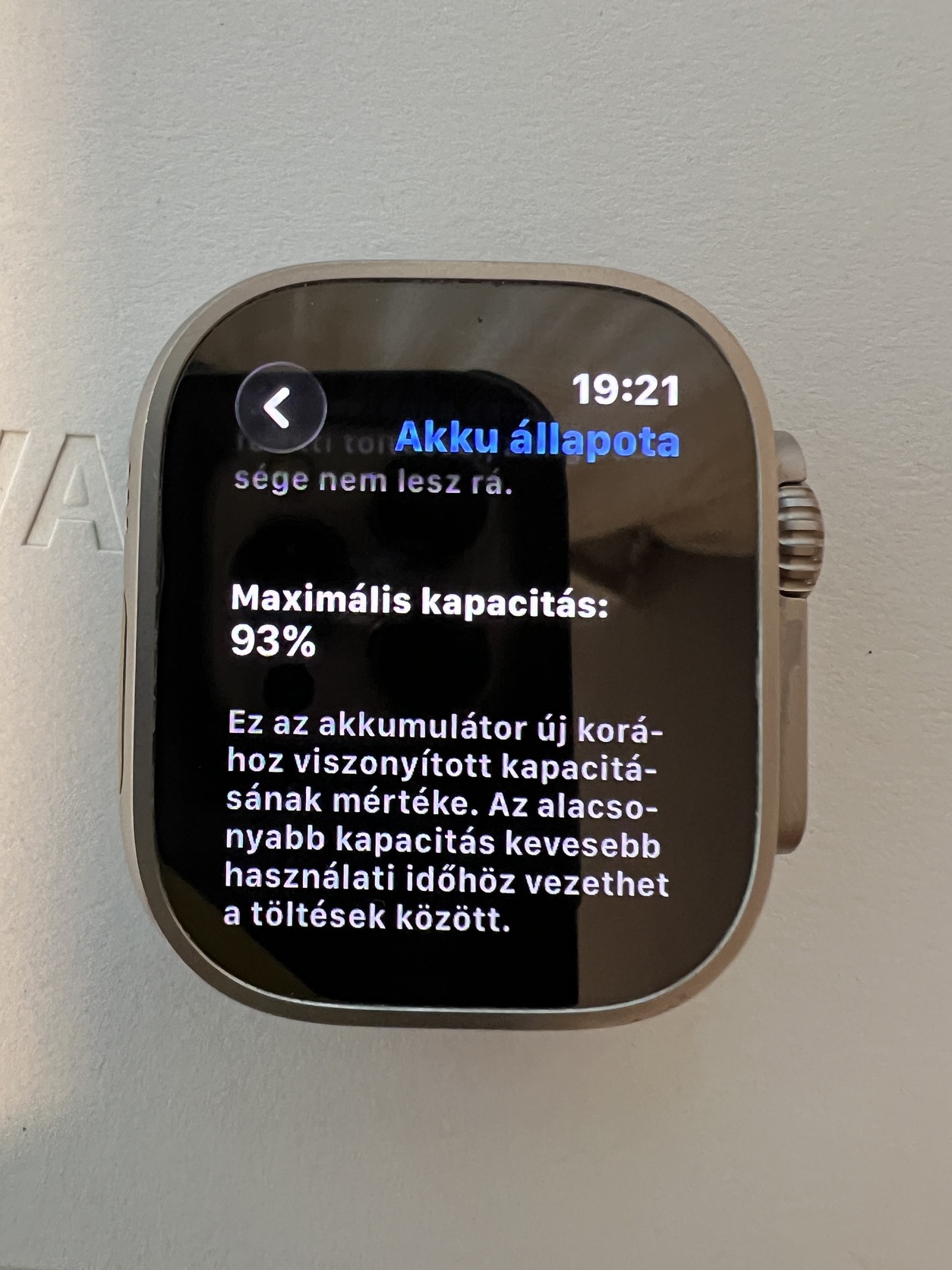 Akkumulátora 93%-os, egy napot bőven kibír, használattól függően akár 3 napot is ki lehet belőle sajtolni.