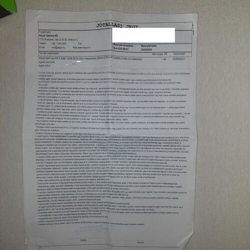 Eladóvá vált nagyobbra váltás miatt a fent említett asus rog 3080 as kártyám 2025 február végéig aqua garanciával ami a nevemre szól.