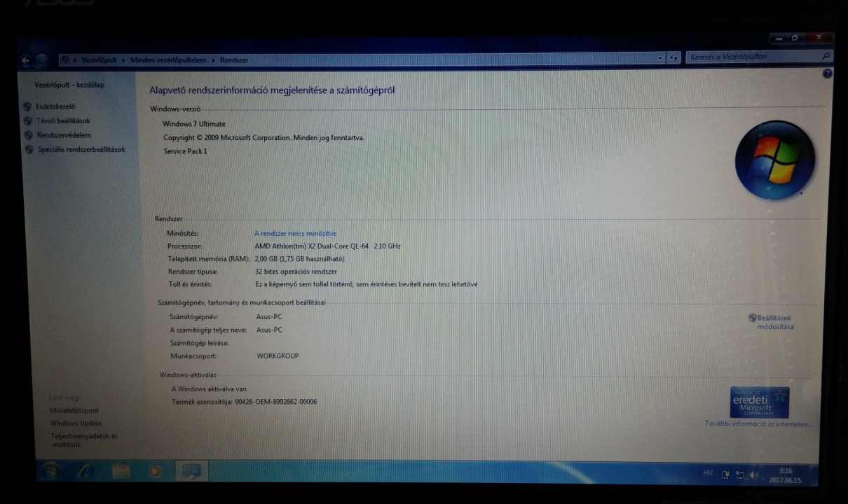 CPU: Mobile DualCore AMD Athlon X2 QL-64, 2100 MHz (10.5 x 200)