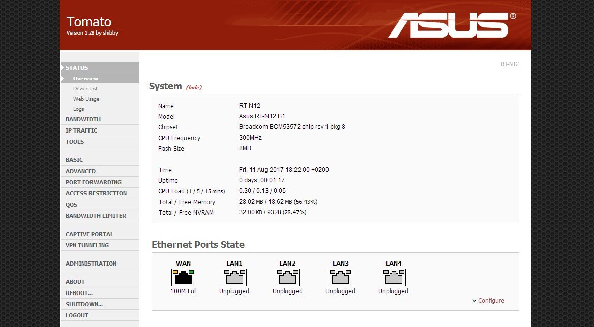 A routeren jelenleg a legújabb Shibby féle Tomato firmware fut, ami elég sok plusz funkcióval ruházza fel, de kérésre visszateszem a gyárit. Lévén a WAN és LAN portjai 100Mbit/s-esek, kisebb internet előfizetésekhez ajánlom. Saját sebességteszt itt található. Cserébe viszont beton stabil, én szünetmentes tápegységen használtam, több mint egy évig hozzá sem kellett nyúlni.