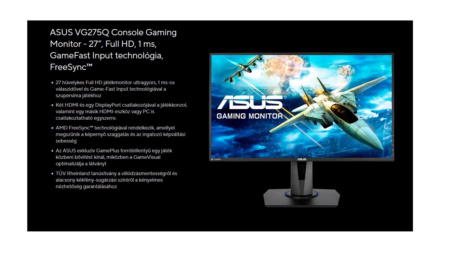 Eladó ASUS VG275Q Console Gaming Monitor - 27 , Full HD, 1 ms, GameFast Input technológia, FreeSync