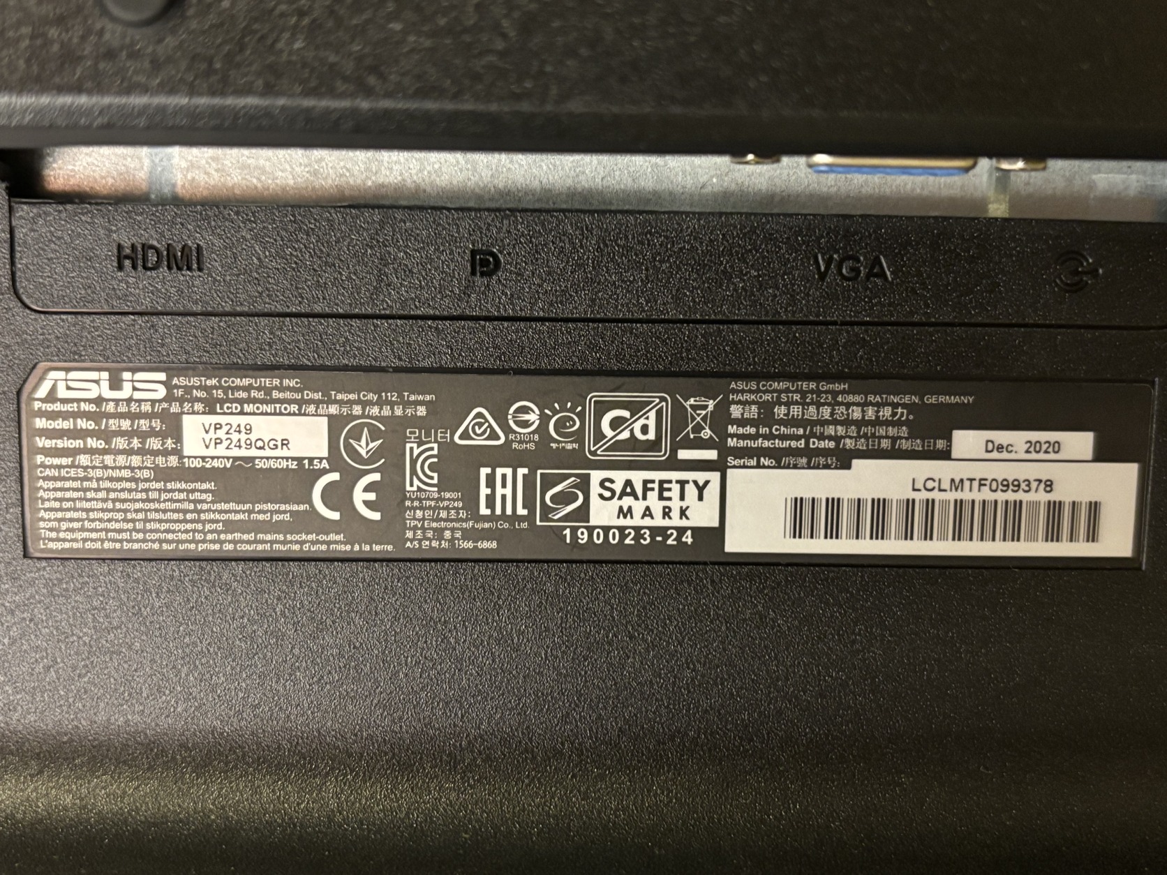 24" ASUS VP249QGR