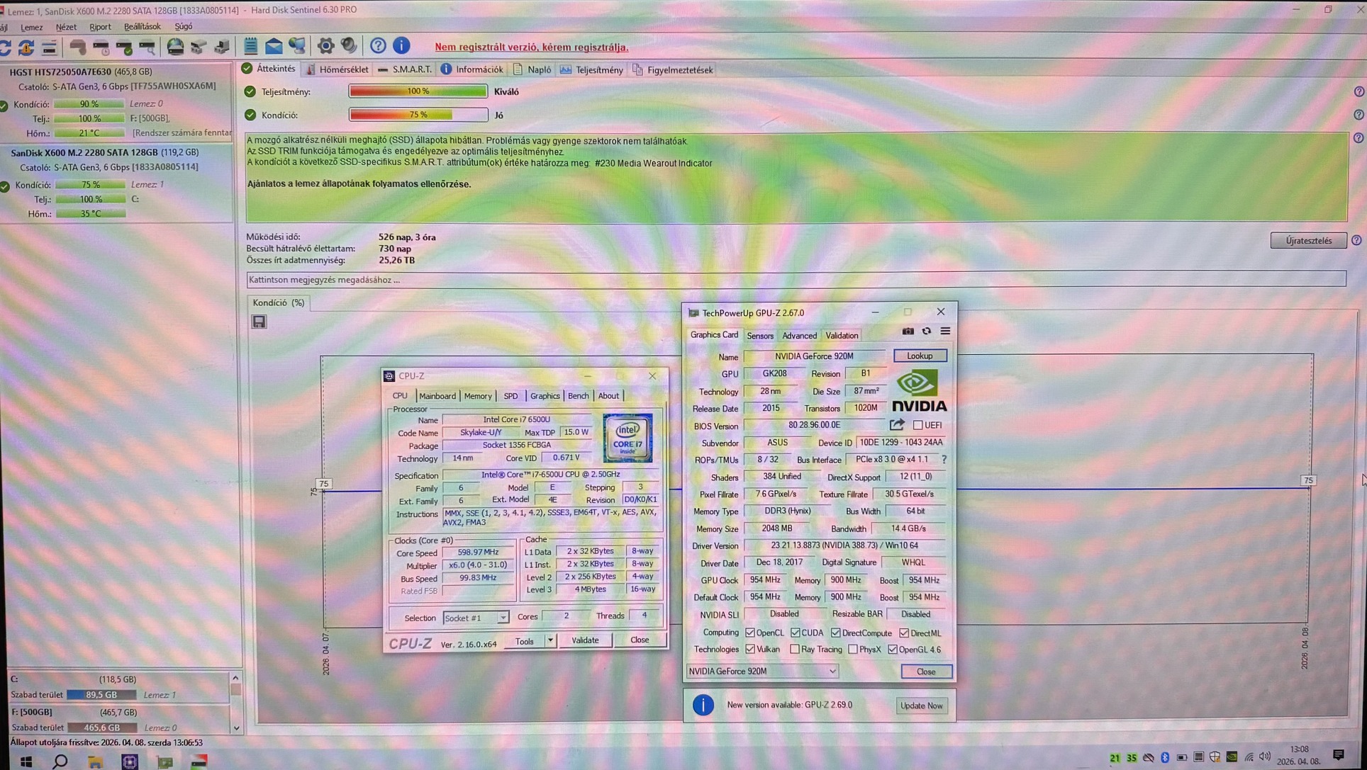 HDD: HGST 500GB (100/90%) 16 gyenge szektor