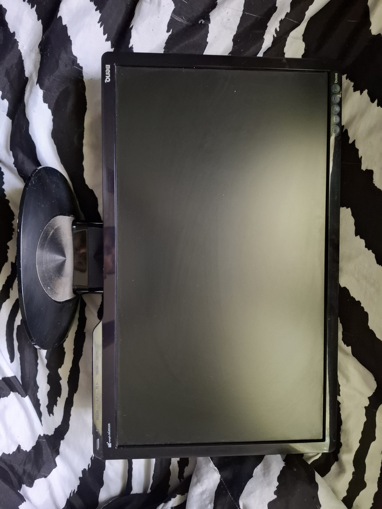 Előlről nézve a monitor talpa foltos.