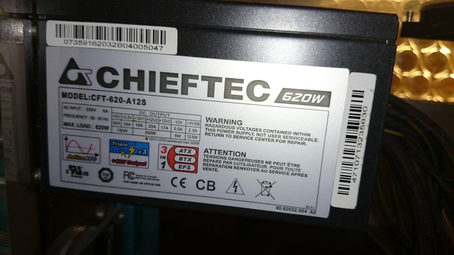 Eladó Chieftec 620W Cft-620-A12S táp, dobozában, tápkábellel. Teljesen megbizható halk, tökéletesen működik, hibátlan megkímélt állapotban. Nagyon erős, több konfigban használtam már. Garancia már nincs rá, probagarit vállalok. Posta van.