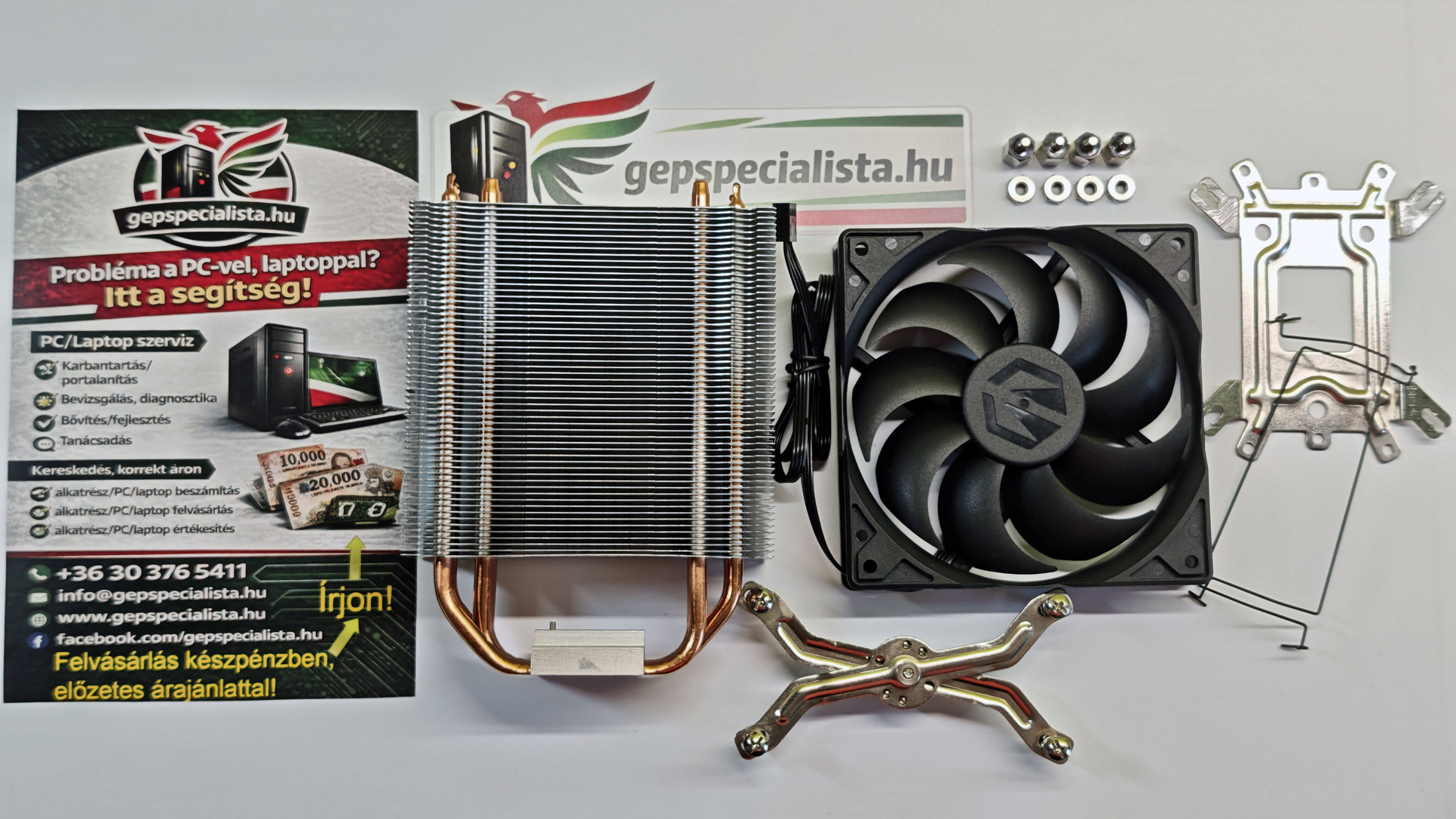🔌 Tartozékok: lefogatókeret, backplate (Intel/AMD egyaránt), csavarok, távtartók, ventilátor-rögzítők