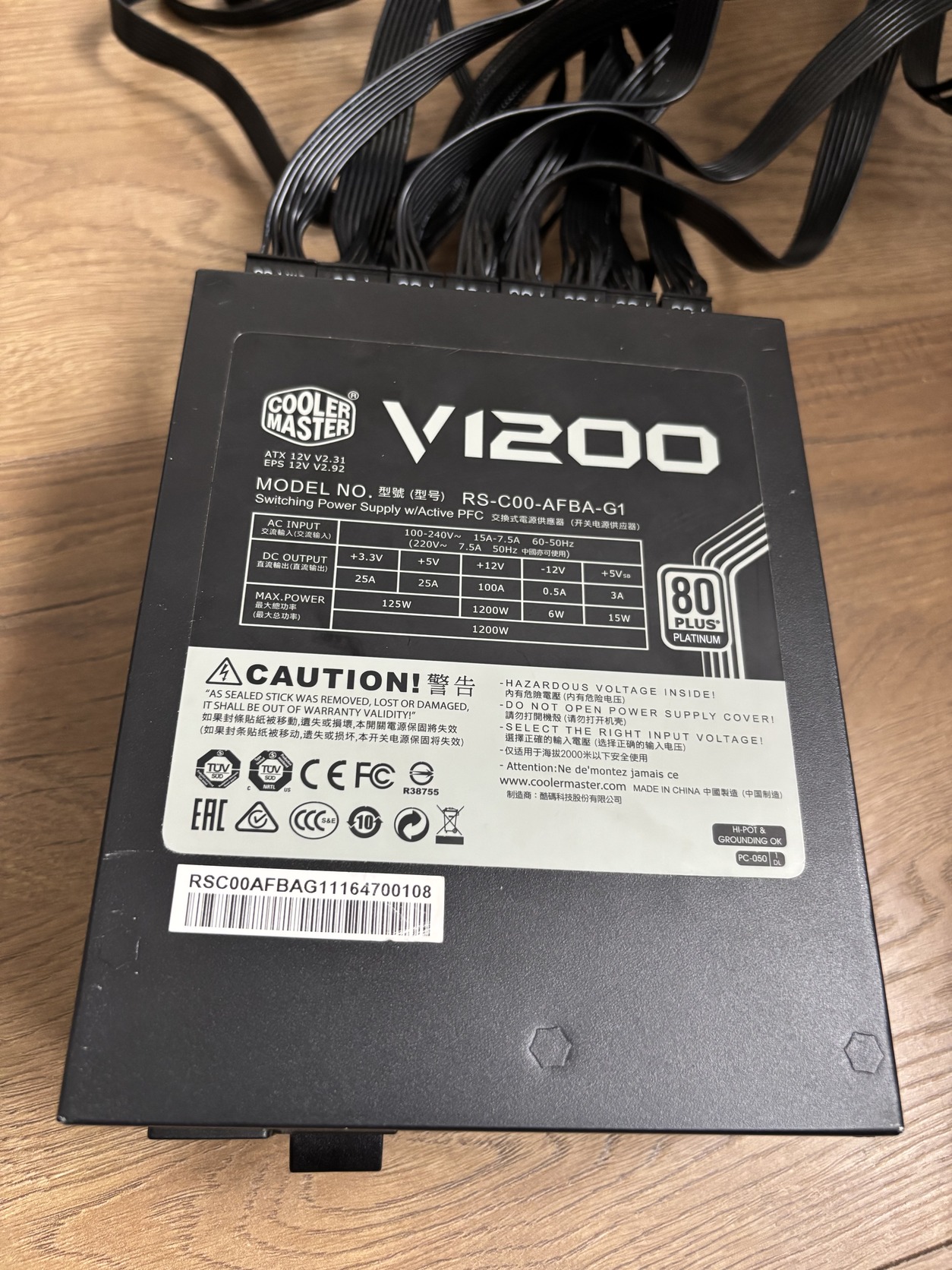 Eladó a képeken látható Cooler Master V1200 1200W 80 PLUS Platinum tápegység.
