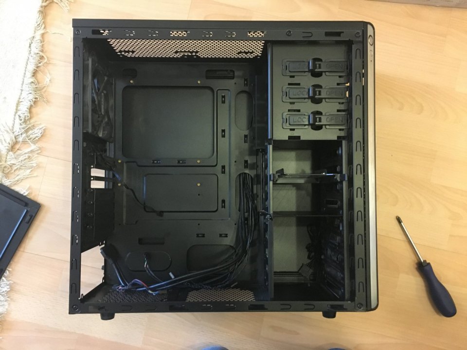 Hátlapján hiányzik két lemez, ahova a videókártya input slot-jai mennek, előlapján egy fedő, ahol a CD/DVD/Blueray meghajtó és író foglalt helyet.
