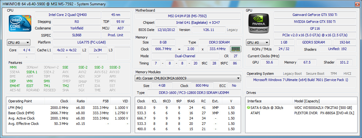 RAM: 8GB dual channel kit (2x4) Corsair Vegeance Low Profile — DDR3@1333MHz/cl7