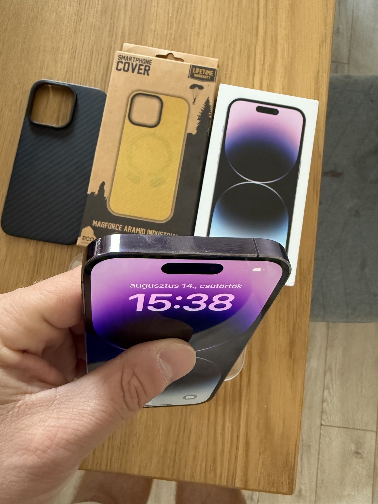 Eladó, cserélhető a címben említett iPhone 14 Pro. Deep purple színű (talán a legszebb eddigi iPhone szín), saját dobozával, minden gyári tartozékával (töltőkábel, némi leírás).128 gigás, gyárilag független. Mivel hivatalos Apple viszonteladónál volt vásárolva (Notebook.hu) magánszemélyként, egy összegben így gyártói garancia van rá egészen 2026.06.08-ig. Természetesen számláját, jótállási jegyét adom hozzá. A telefon abszolút gyönyörű állapotú mivel végig tokkal és Spigen üvegfóliával volt használva. A kijelző és a hátlap makulátlan, de a kereten is minimális a kopás (ez kb elkerülhetetlen ezeknél) - szóval nem egy lelakott vacak. Az akksi 84% és normál használat mellett simán lehoz egy napot (a játék nyilván kinyírja). Sosem járt szervízben, mindene gyári és tökéletesen működik. Ajándékba adok hozzá két Tactical aramid tokot (kb 30ezer Ft értékben) illetve egy új Spigen üvegfóliát, felhelyező kerettel együtt (ez sem olcsó), így semmit sem kell költened rá.
