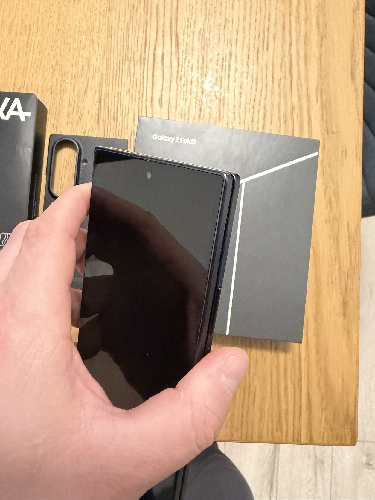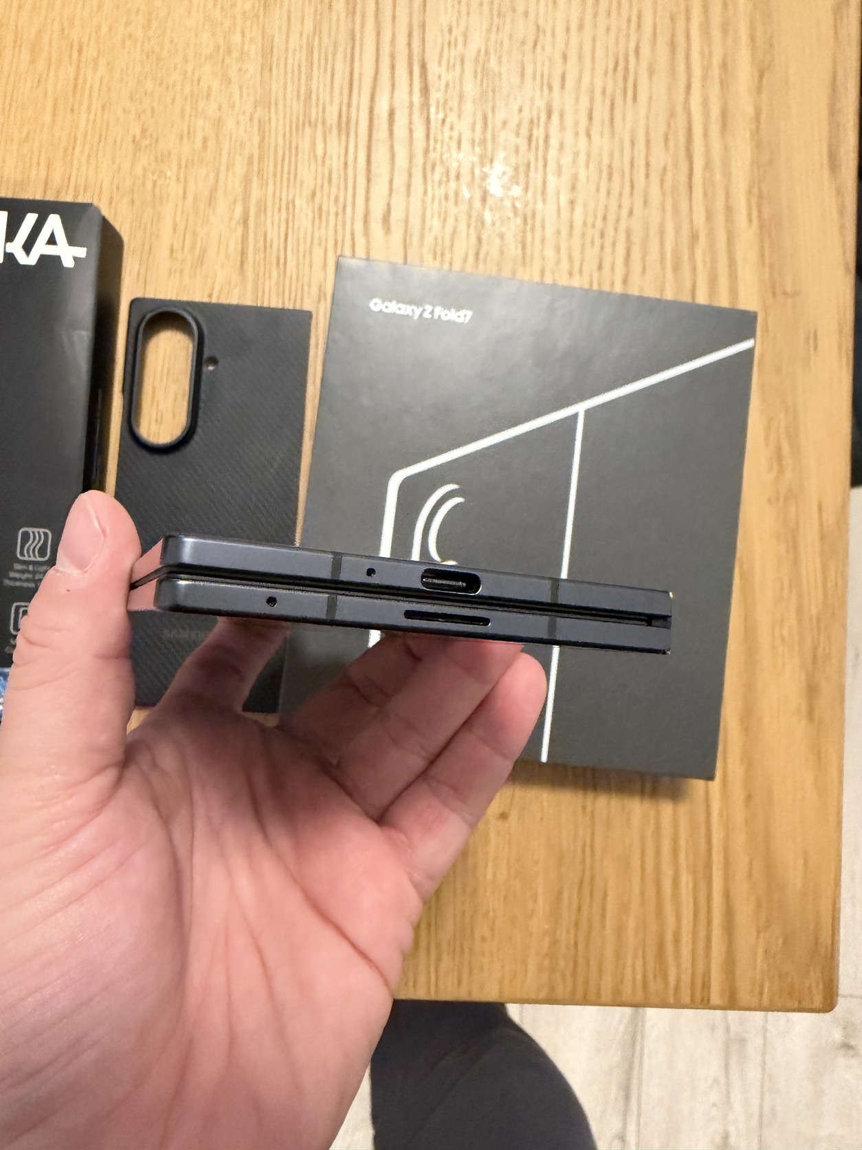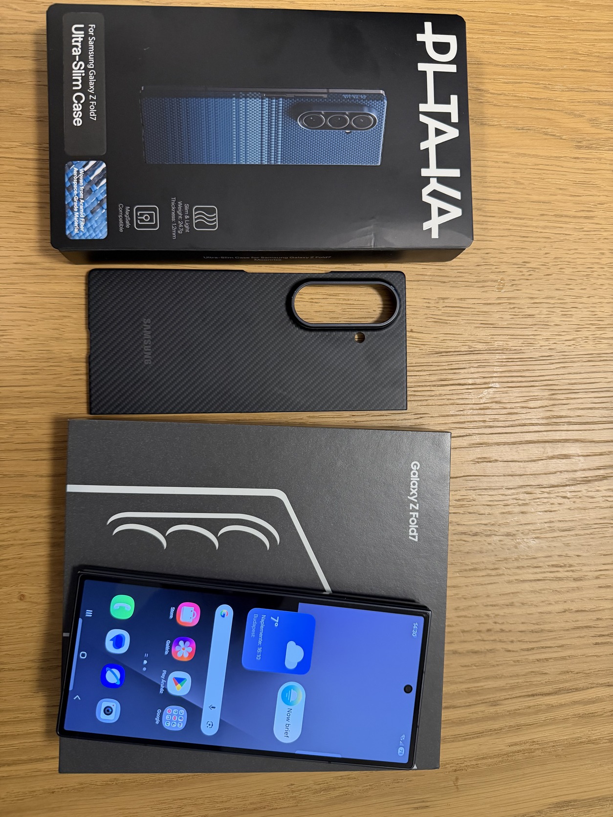 Ajándékba jár hozzá egy gyári Pitaka és egy Samsung karbon tok, illetve a külső kijelzőn egy Spigen ütésálló fólia van. Ezek összértéke majdnem 80.000 Ft.