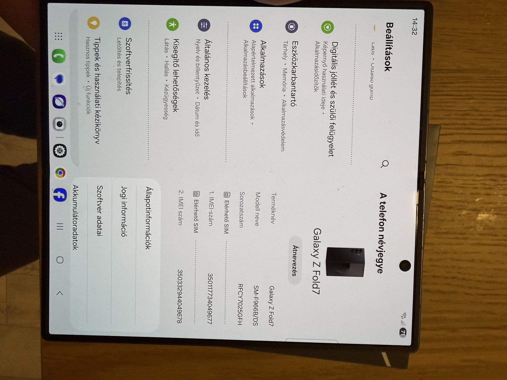 Eladó/cserélhető gyönyörű Samsung Z Fold 7, 12/512 GB, SES Store, Samsung 2028.07.18 + drága tokok