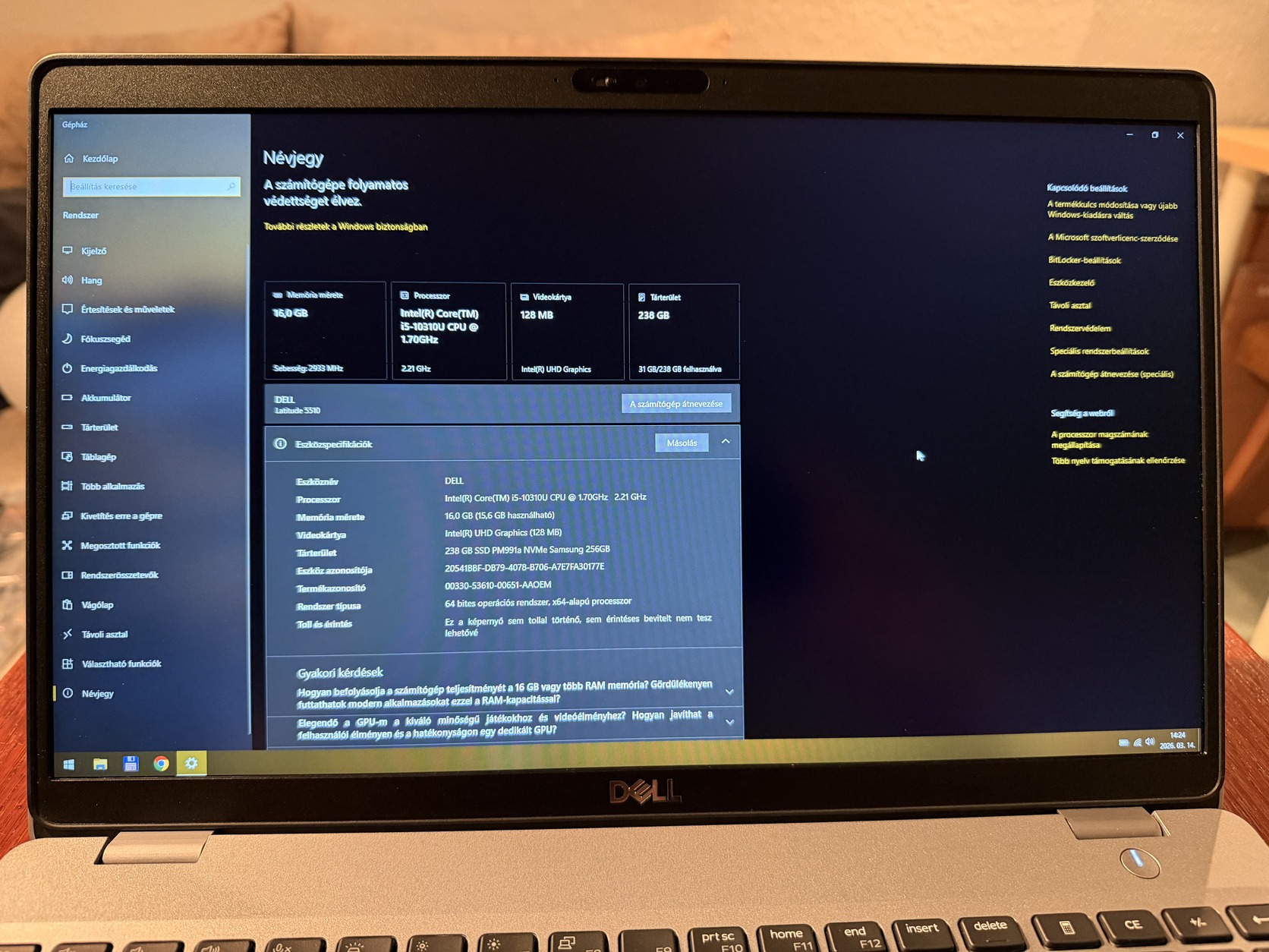 Processzor: Intel Core i5-10310U