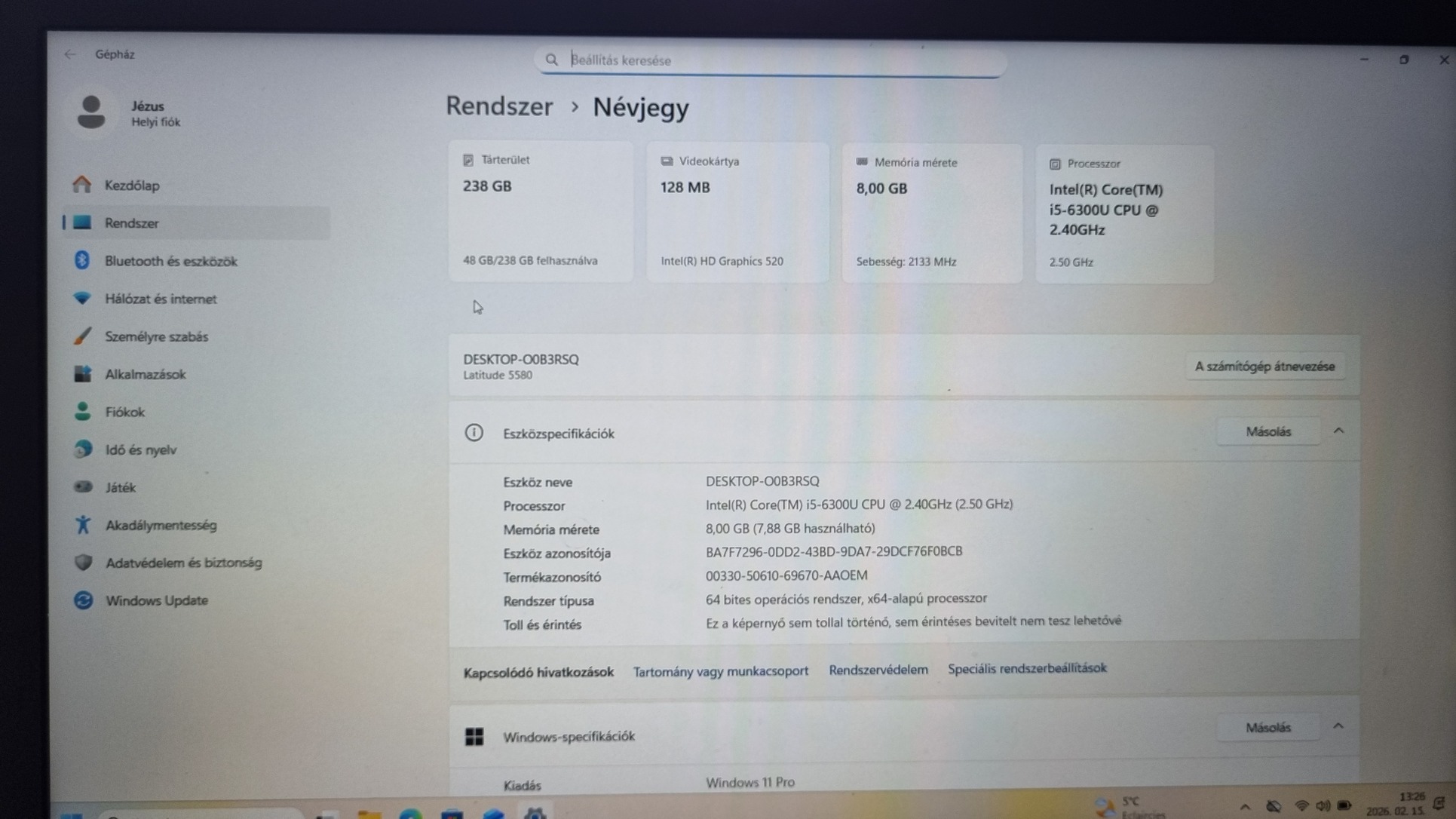 Windows 11 Pro (legálisan frissen telepítve)