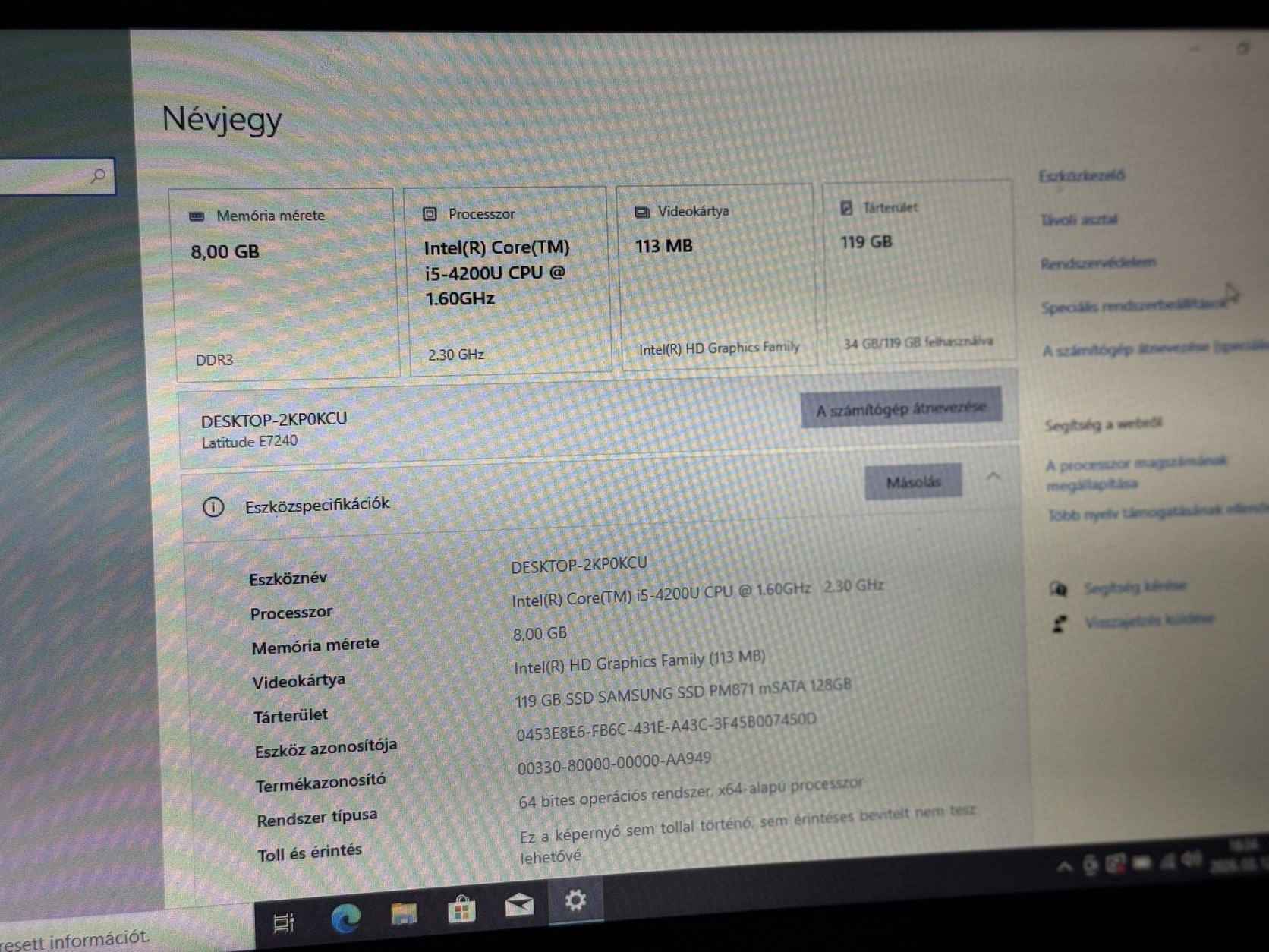 - Intel Core i5-4200u 1.6 ghz (2 mag 4 szál)