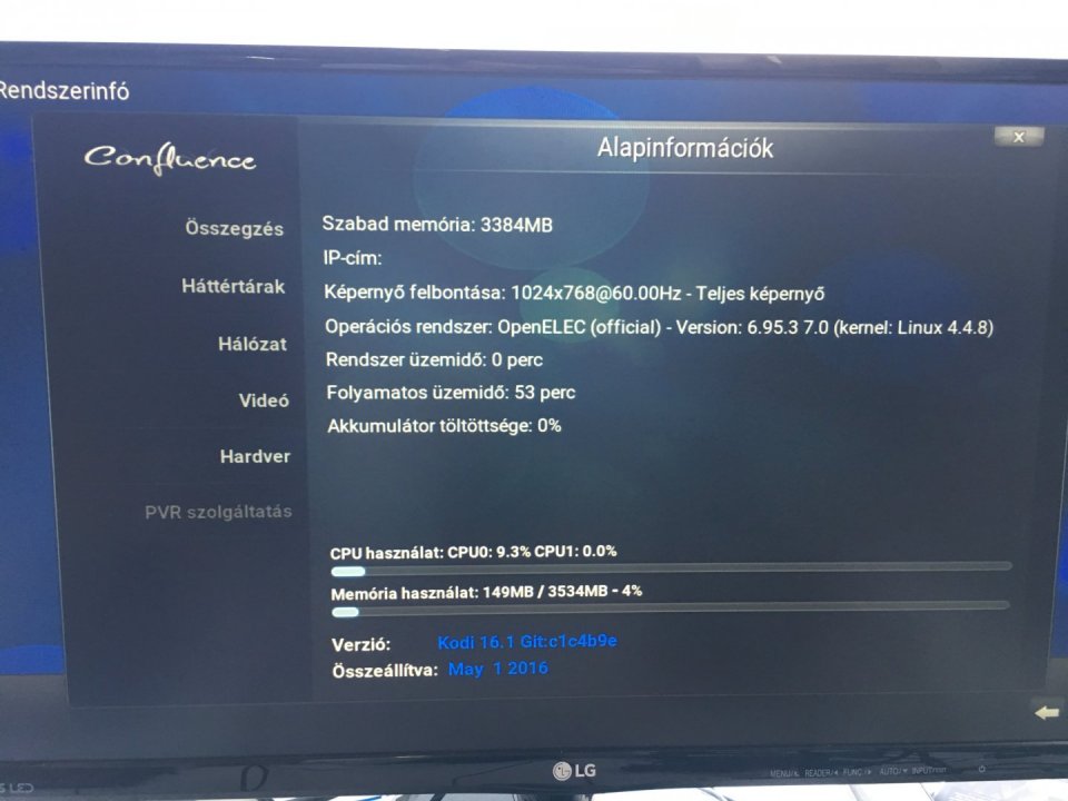 Jelenleg egy OpenELEC 6-os operációs rendszer van rá telepítve, ami alkalmas médialejátszónak.