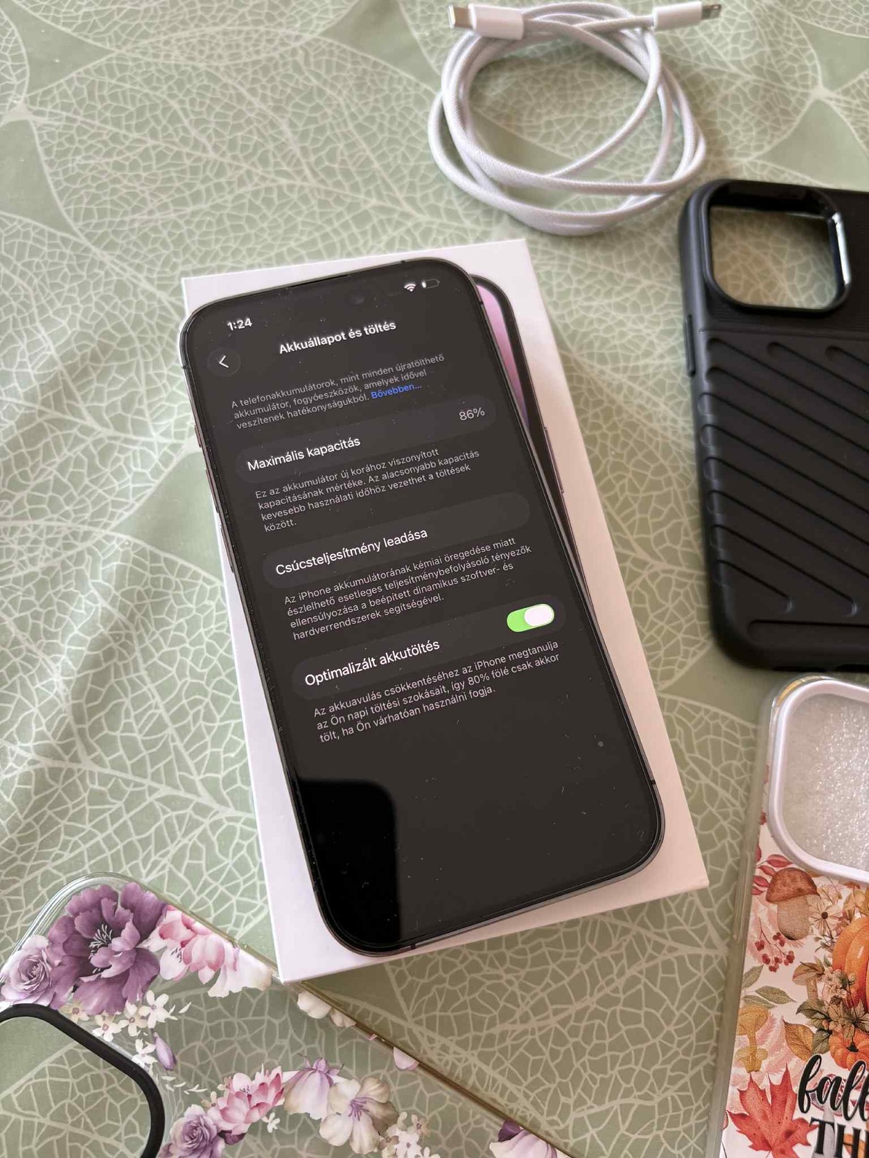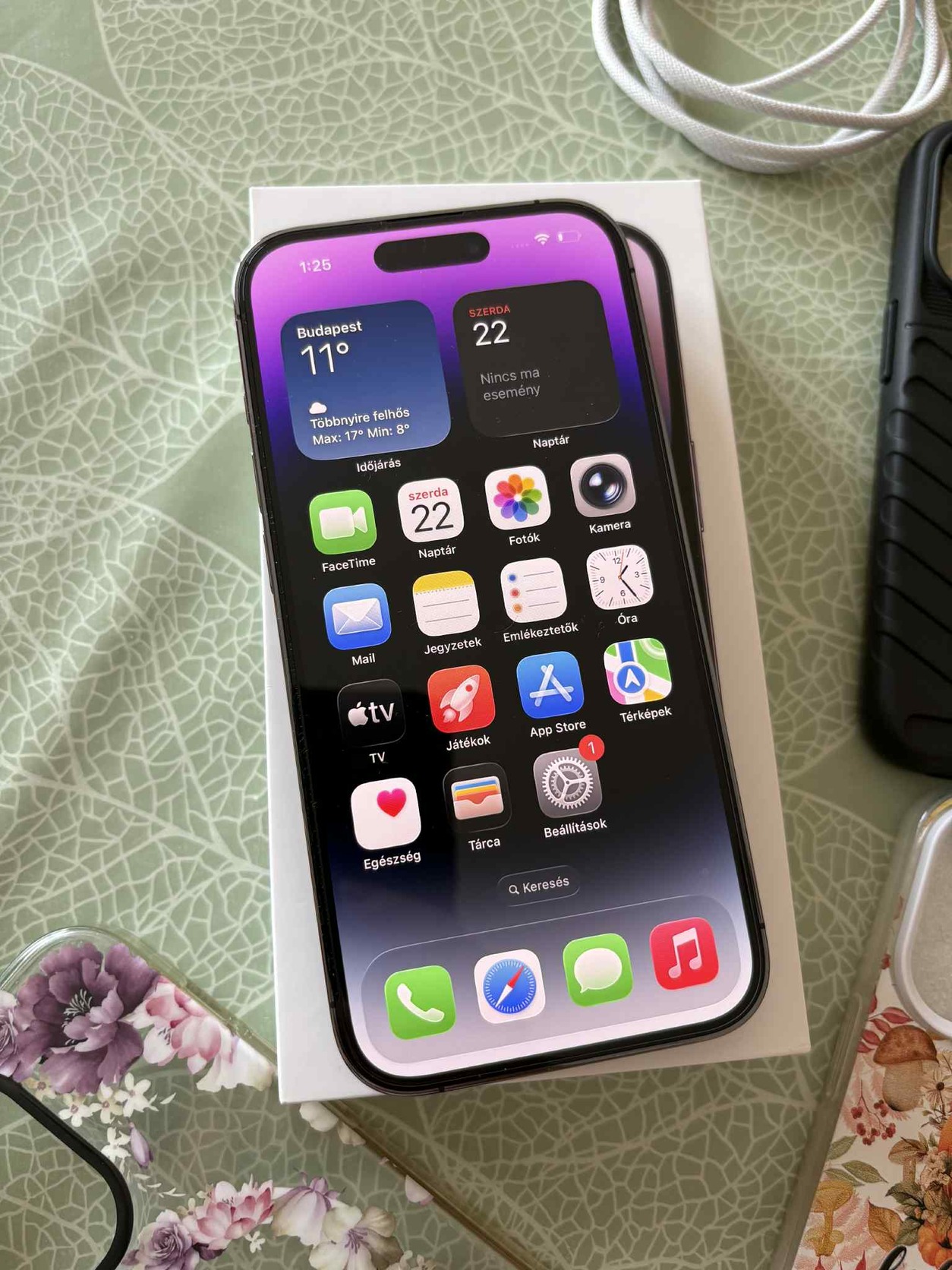 Eladó egy 2023 máciusában a One-tól vásárolt Apple iPhone 14 pro, 128Gb-os. Korához képest szép állapotban. Vételtől számítva volt rajta mindig kijelzővédő fólia és kamera védő is. Kereten vannak apróbb használati nyomok a por miatt, ami a tok és a keret közé került. A készülék One függő volt, de nem rég ki lett függetlenítve. Akkuja 86%-os. Dobozában, fonott lightning kábellel, a képen látható sok - sok tokkal eladó.