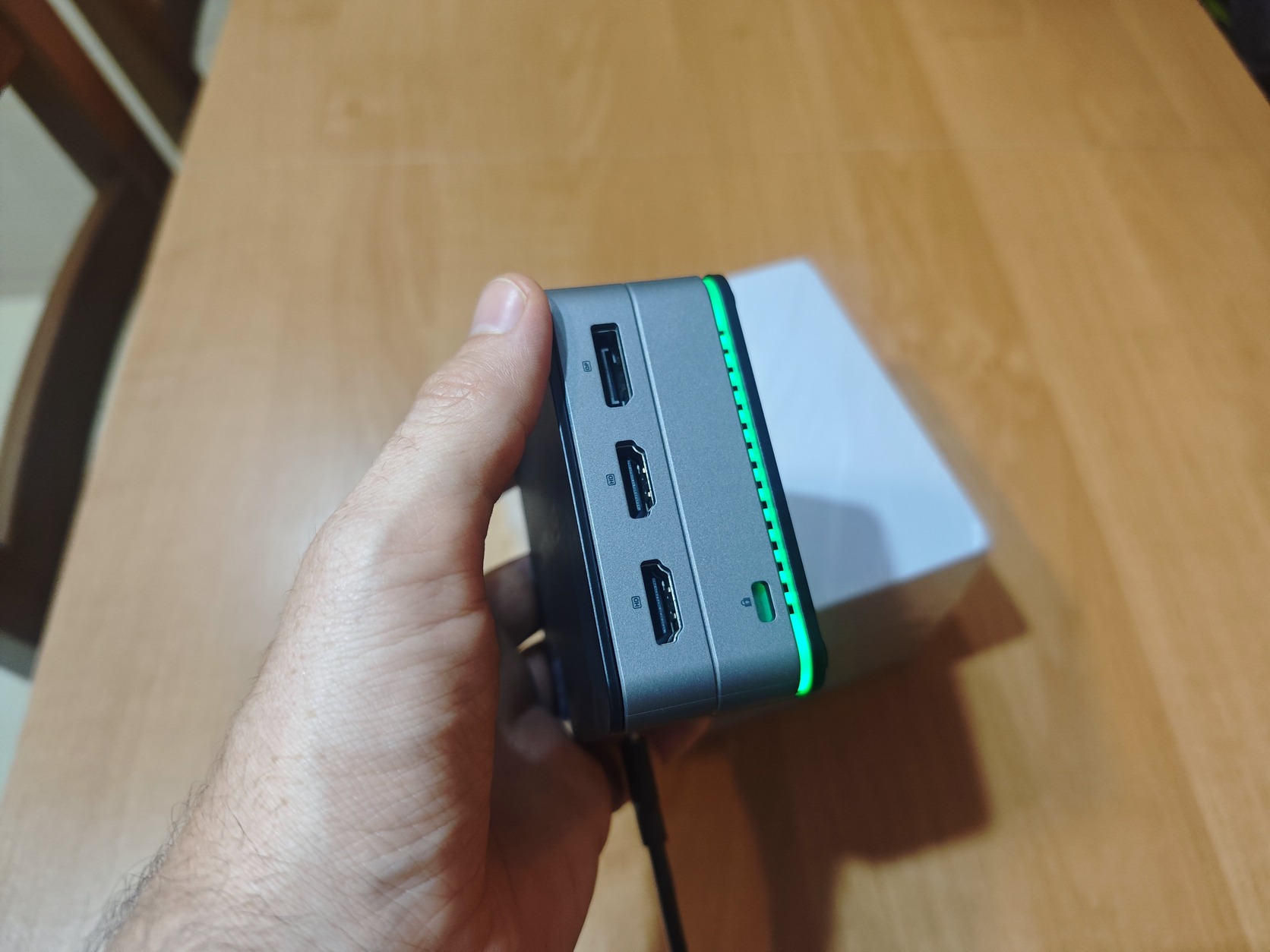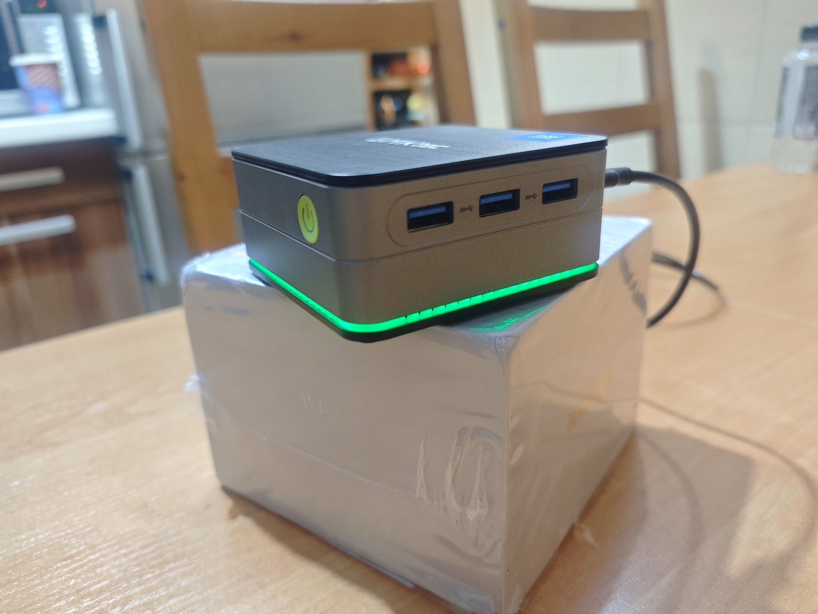 A kis mérete ellenére (csak 8.7 x 8.7 x 4 cm) nagyon jó teljesítményre képes irodai munkákhoz, webböngészéshez és multimédiás tartalmak lejátszásához. Akár 3 monitort is tud egyszerre hajtani 4K felbontásban! :) A gép különlegessége a beépített RGB világítás, ami extra stílusos megjelenést ad neki. Nagyon energiatakarékos és csendes működésű. Windows 11 fut rajta, minden tökéletesen működik.