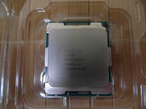 i7 7820X-es processzor, ami dobozával és papíros garanciával rendelkezik.
