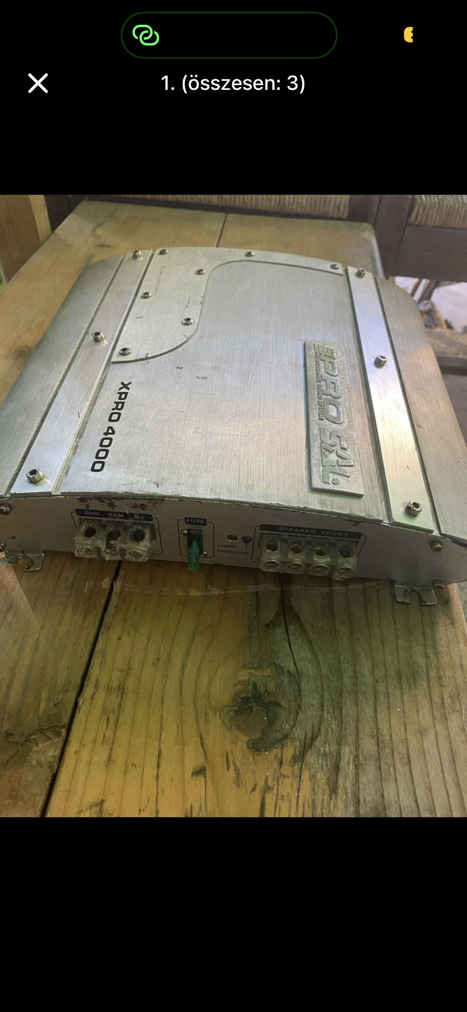 XPRO 4000 autóerősítő, működőképes. Csatlakozó rögzítése törött, de csavarral stabilan megfogatható, így használatban is volt. Kopott, de működik.