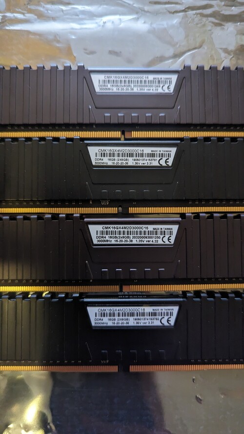 -4x8GB 3000mhz Corsair Vengeance LPX DDR4 ram EZ 2 DARAB 2x8 GB-OS KIT! eleinte csak 16 GB-ot használtam, de késöbb vettem egy azonos típusú (CMK16GX4M2D3000C16) kitet, amivel bővítettem, ezért az eltérő verzió szám a 2 kiten.