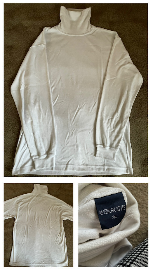 1. Fehér garbó pulóver, Címkén XXL a méret, de inkább M-L-es